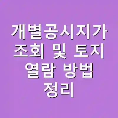 개별공시지가는 토지 가치 평가의 중요한 기준입니다. 이를 통해 토지 소유자나 거래자는 필수적인 정보를 확보할 수 있습니다. 본 글에서는 개별공시지가 조회 및 열람 방법에 대해 상세히 설명하였습니다.