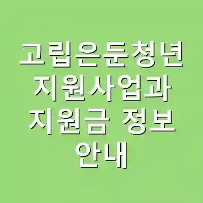 고립은둔청년 지원사업의 신청 방법과 지원금