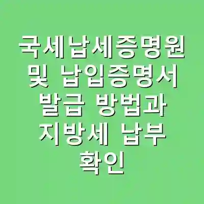 국세납세증명원과 납입증명서 발급 방법 및 지방세 납부 확인에 대한 정보를 제공했습니다. 이러한 서류는 개인 및 사업체 모두에게 필수적인 자료로, 올바른 발급 과정과 납부 확인 절차를 통해 세무 업무를 원활하게 진행할 수 있습니다.