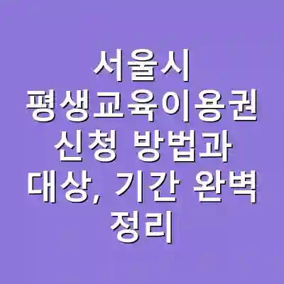 서울시 평생교육이용권은 서울에 거주하는 성인이 평생교육 강좌를 수강할 수 있도록 지원하는 제도로, 최대 35만 원의 교육비를 지원받을 수 있습니다. 이번 글에서는 서울시 평생교육이용권의 신청 방법, 대상, 기간에 대한 자세한 정보를 제공합니다. 이를 통해 시민들은 보다 쉽게 평생교육에 참여할 수 있는 기회를 얻을 수 있습니다. 이 글을 읽고나면 서울시 평생교육이용권을 활용하는 방법에 대한 명확한 이해를 얻을 수 있습니다.