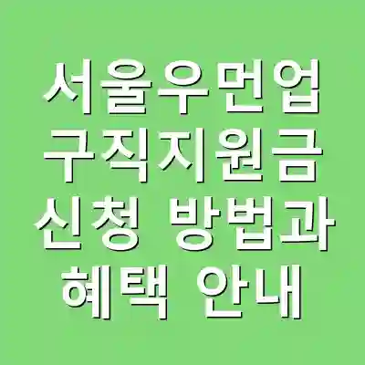 서울우먼업 구직지원금은 경력단절 여성과 구직 중인 여성을 위한 서울시의 지원 프로그램입니다. 신청은 온라인을 통해 가능하며, 지원금은 구직활동에 필요한 비용을 지원합니다. 여성들의 경제적 자립을 돕는 이 프로그램을 통해 많은 이들이 혜택을 받을 수 있습니다.