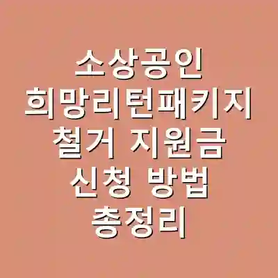 소상공인 희망리턴패키지의 점포철거비 지원은 폐업 시 큰 비용 부담을 경감해 줍니다. 신청 조건과 절차를 명확히 이해하고, 철거업체를 신중하게 선정하여 효과적인 지원을 받을 수 있습니다. 정부의 지원을 통해 안정적인 폐업을 준비하고, 성공적인 재기를 이룰 수 있도록 하십시오.