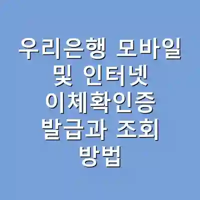 우리은행의 이체확인증 발급 방법에 대해 알아보셨습니다. 모바일, 인터넷, 지점 방문을 통해 각각의 장점이 있으니, 필요에 따라 적절한 방법을 선택하시면 됩니다. 이 정보를 바탕으로 필요한 순간에 정확한 이체확인증을 발급받아 유용하게 활용하시기 바랍니다.